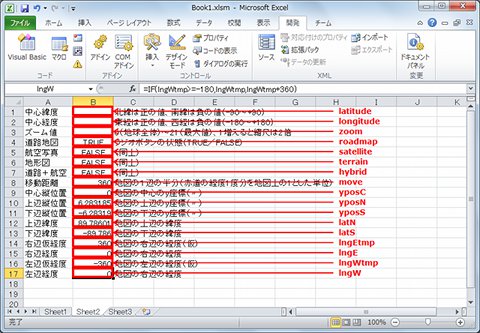| lngW | B17 | 地図の右辺の経度(上記を補正) |