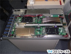 そして、Tesla S1070は、4枚のGPUボードを1Uのスリムな筐体に収容し、2本のPCI-Express 2.0 x16でホストサーバに接続する構成となっている。ただし、TSUBAMEの場合は、2年前に設置したX4600がPCI-Express 1.0のx8インタフェースしか持っておらず、S1070との間のバンド幅をフルに利用することはできない。