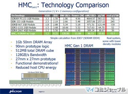 高バンド幅のHMCは、大量のメモリアクセスを必要とするスパコンのメモリとしては最適である。実は、米国のDARPA(国防高等研究計画局)の推進するExtremeScale UHPCシステムを開発するプロジェクトを受注したNVIDIAのEchelonチームにはMicronが入っており、2010年11月のSC2010でNVIDIAのチーフサイエンティストのBill Dally氏のEchelon計画のプレゼンテーションにはシステムのメモリとしてDRAM Cubeが描かれている。