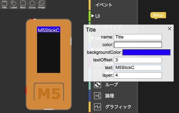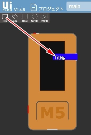 タイトルテキストはTitleのアイコンをM5StickC画像上にドラッグドロップします。