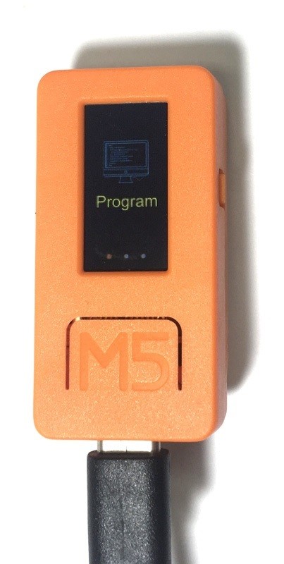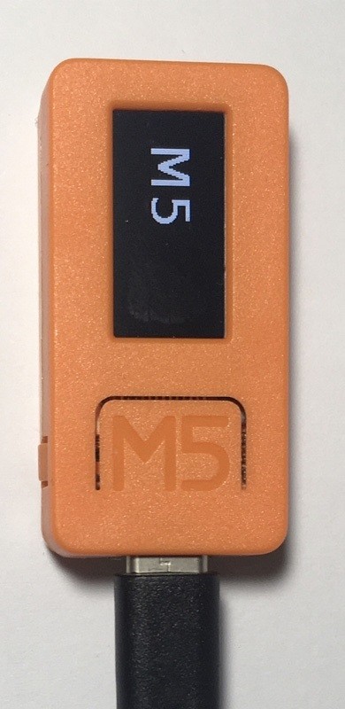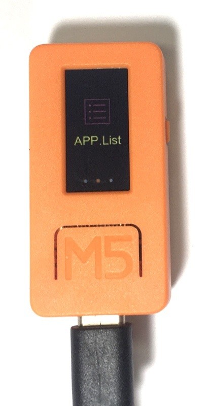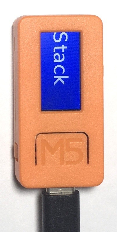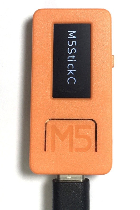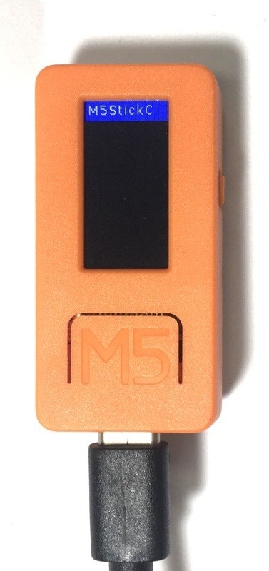それでは、これまでと同様にM5StickCにプログラムを転送して動作を確認してみましょう。M5StickCの画面にM5と表示されるはずです。