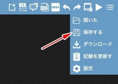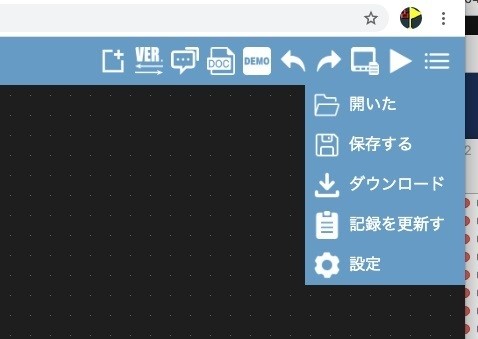 プログラムを保存するにはUIFlow画面右上の三をクリックします。