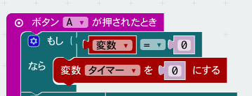ãããã£ãšãã®ãããã¯å ã§ãã¿ã€ããŒãã®å€ãã«ãŠã³ãããŠãããšå°ã£ãåé¡ãçºçããŸããããã¯ãã²ãŒã ãéå§ããŠããªãã®ã«ãã¿ã€ããŒãã®å€ãã«ãŠã³ãïŒå¢ããŠïŒããŸãããšã§ãããã¿ã€ããŒãã®å€ã¯ã²ãŒã éå§æã«0ã«ããªããã°ãããŸãããããã§å³ã®ããã«Aãã¿ã³ãæŒãããæã«ã倿°ãã®å€ã調ã¹ãŠã²ãŒã ãå§ãŸã£ãŠããªãå Žåã¯åžžã«ãã¿ã€ããŒãã®å€ãã0ãã«ããããã«ããŸãã