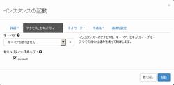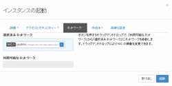 [アクセスとセキュリティー]では、キーペアおよびセキュリティグループを選択する。このキーペアとセキュリティグループを使用する場合は、事前に設定・作成しておく必要がある。[ネットワーク]では、仮想インスタンスに接続するネットワークを選択する。選択されるネットワークは、事前に作成にする必要があり、これはコンポーネントとしてNeutronが担う役割となる。