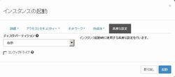 [作成後]では、仮想インスタンス起動後に実行するスクリプトを指定できる。[高度な設定]では、仮想インスタンスのディスクパーティションに関わる定義を実施可能となっている。
