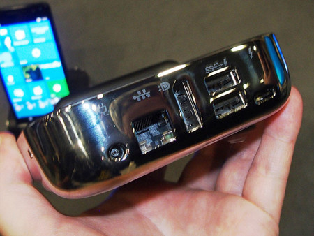 まずは卓上にElite x3を設置する際に使う、「デスクドック」だ。充電スタンドとして機能するのはもちろんだが、背面にはディスプレイ出力やUSBポート、有線LANポートを搭載。外部ディスプレイや社内ネットワークを有線で利用できるのが大きな特徴だ。まさにWindows 10 Mobileのポテンシャルを最大限に引き出せるドックといえる。
