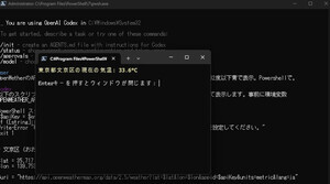 {0:N1}はフォーマット文字列で0は最初の引数$temp、小数点以下1桁までを:N1で指定。次のWrite-Hostでコンソールに書き出し、ダブルクリックで表示したままにするためにRead-Host "Enterキーを押すとウィンドウが閉じます"を末尾に追加している。簡単なカスタマイズをしてみよう。