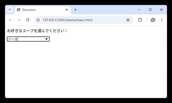 この特性は、サンプルのような数個のリストではあまり効果を感じないかもしれませんが、100を越えるような大量のリストがある場合には便利です。このように、テキスト入力におけるdatalistは、選択させるというよりはあくまでも入力を補完するという位置付けといえそうです。