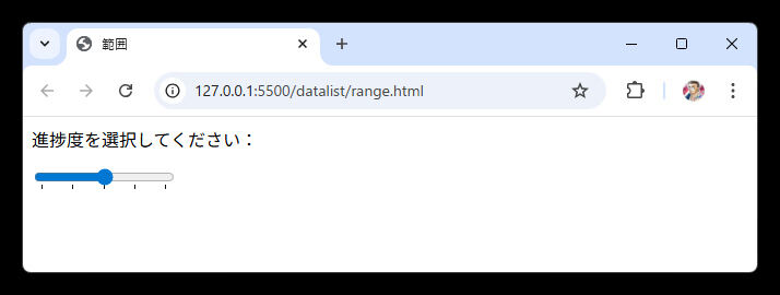 ページを表示させると、datalistで指定した値に、目盛りが表示されます(図9)。