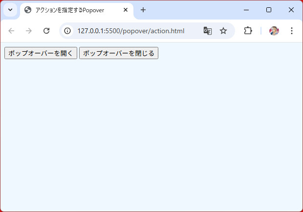 - popovertargetaction="toggle":開く/閉じるをトグル(既定)