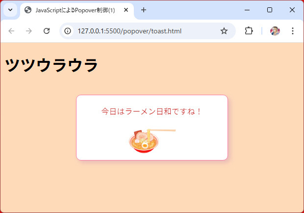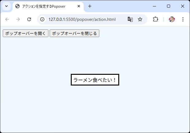 <div id="popover1" popover="auto">ラーメン食べたい!</div>