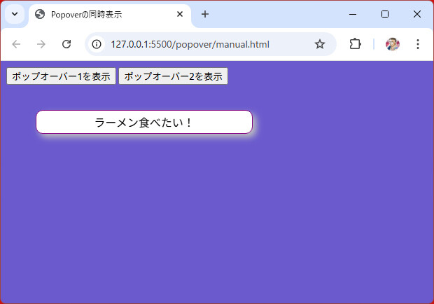 <div id="popover1" popover="manual">ラーメン食べたい!</div>