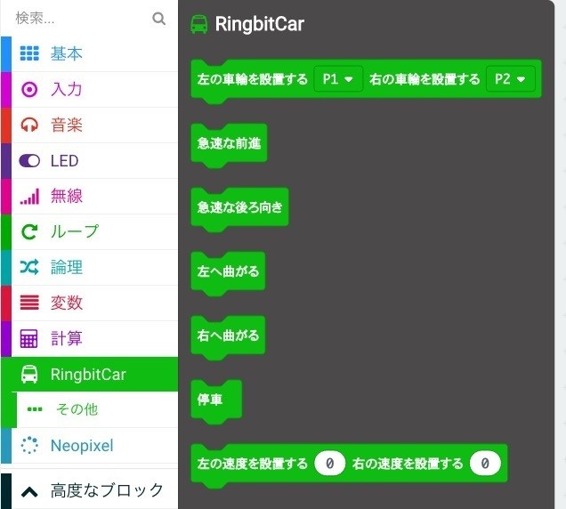 するとRingbitCarの拡張機能が読み込まれます。RingbitCar以外にも拡張機能が読み込まれることがありますが問題はありません。