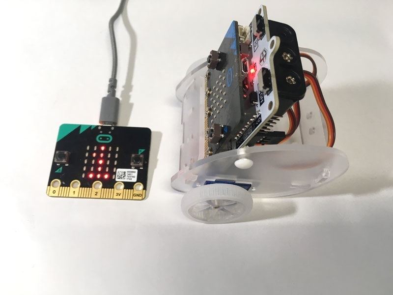 あらかじめ決められた動作だけを行うのもロボットの利点ですが、手動で操作したいこともあります。最後にもう1つマイクロビットを使って、リモートで制御してみます。マイクロビットにはBluetoothを使って無線通信ができるので、これを利用します。