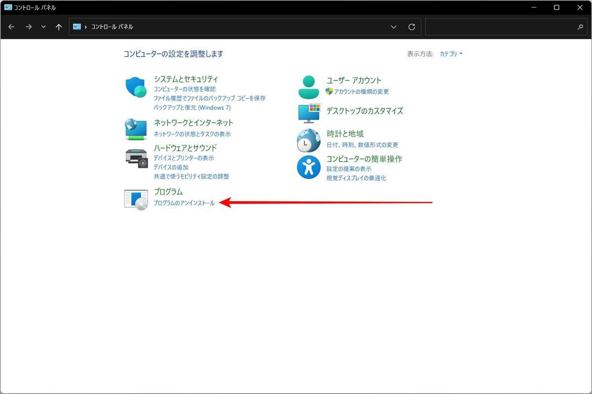 そんなときには「コントロールパネル」の「プログラムのアンインストール」を試してみよう。