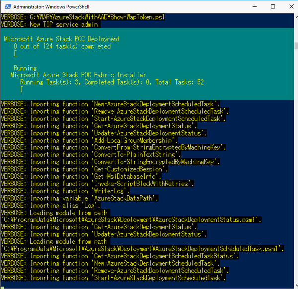 サイトの手順通りにVHDBootを済ませたら、後はPowerShellを管理者として立ち上げて「.\DeployAzureStack.ps1 -Verbose」というスクリプトを実行するだけです。Azure Stackのセットアップのほか、スクリプトにハードコードされた「azurestack.local」というActive Directory(Azure Active Directoryではありません)も自動構築されます。